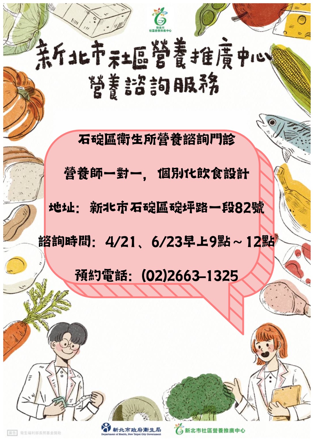 新北市社區營養推廣中心營養諮詢服務115年4月21日及6月23日上課囉